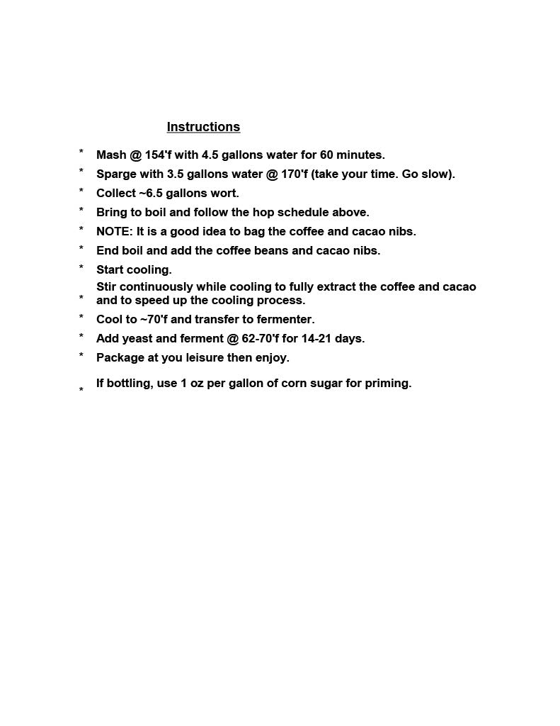 This kit comes complete with all the malt, hops, yeast, Coffee, and Cacao Nibs, to make this recipe.
